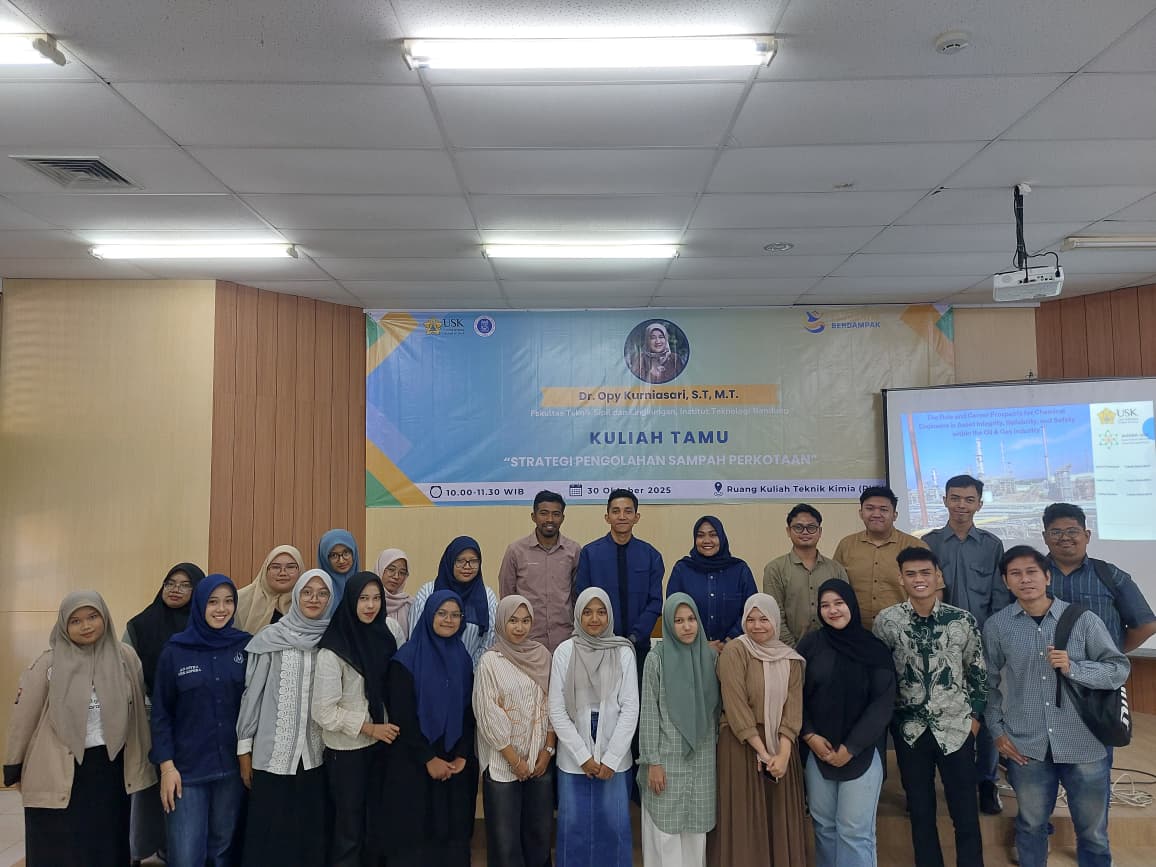 Banda Aceh, 3 November 2025 — Departemen Teknik Kimia Universitas Syiah Kuala (USK) kembali menyelenggarakan kegiatan Kuliah Tamu Praktisi Industri dengan tema “Prospek Lulusan Teknik Kimia: Asset Integrity, Inspection, Reliability and Safety in Oil & Gas Industry”. Kegiatan ini berlangsung di Ruang Kuliah Departemen Teknik Kimia USK pada pukul 08.30 hingga 10.30 WIB dan dihadiri oleh mahasiswa serta dosen Program Studi Teknik Kimia.